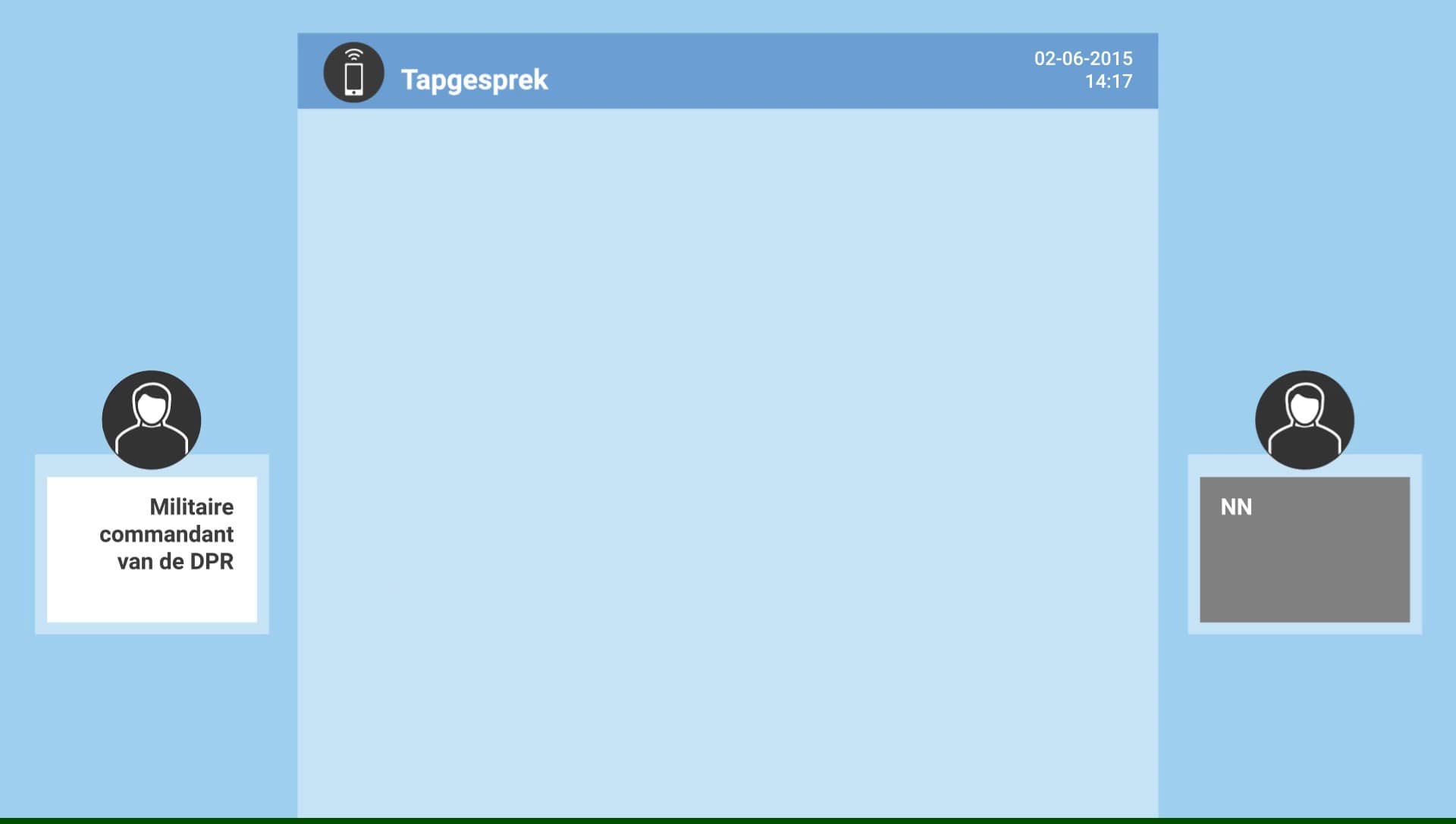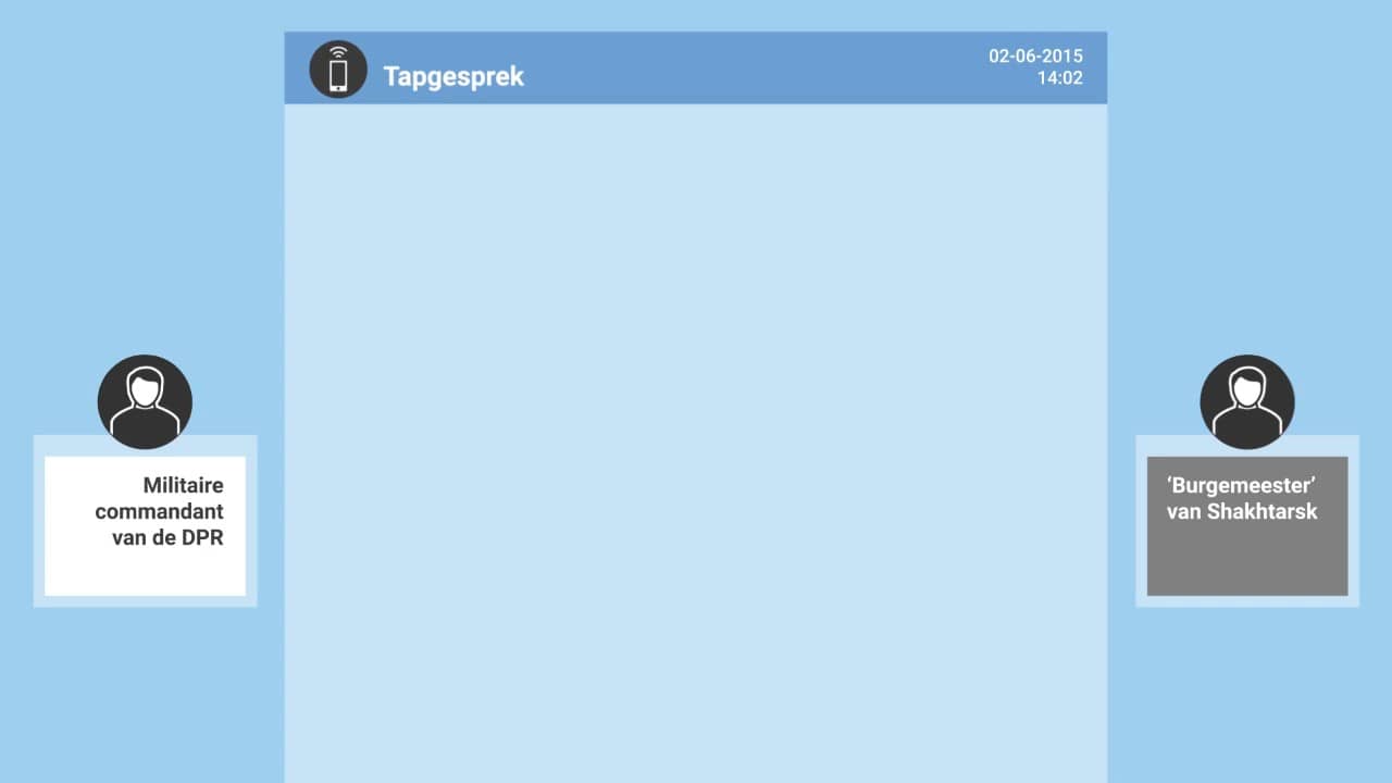 On the same afternoon as Almaz Antey’s first press conference, on 2 June 2015, an individual thought to be the self-appointed ‘mayor’ of Shakhtarsk (A) spoke with a military commander of the DPR (B). Shakhtarsk is located a few kilometres away from Zaroshchenske. We will now play the excerpt.