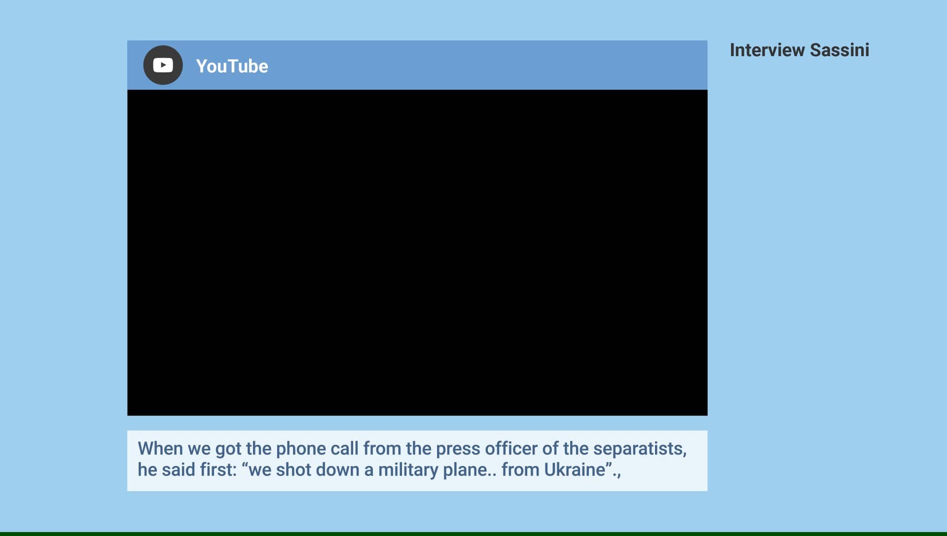 A good example is an online video interview with photographer Jérôme Sessini. In it he looks back on how a spokesperson for the ‘separatists’ informed him about the crash of MH17. In the interview Sessini said that this spokesperson called him shortly after the crash of MH17 to say that they had shot down an aircraft.