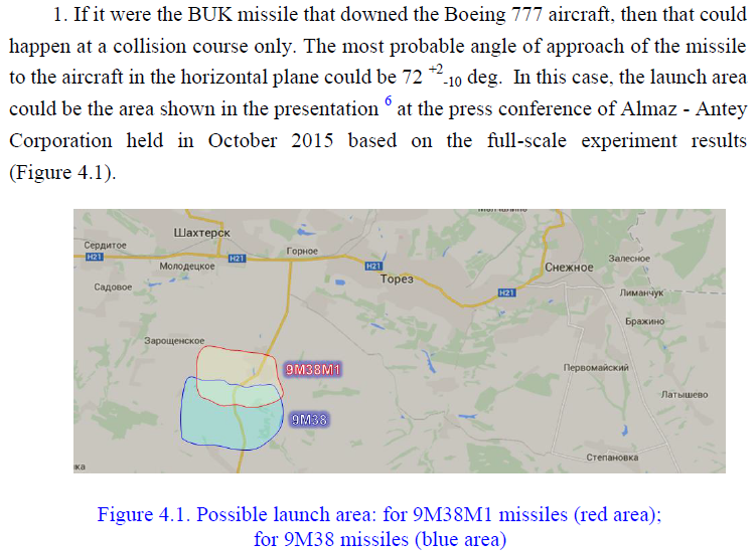 reports concerning field tests conducted by Almaz-Antey and concerning calculations of the launch location by Ukrainian and Australian research institutes;
