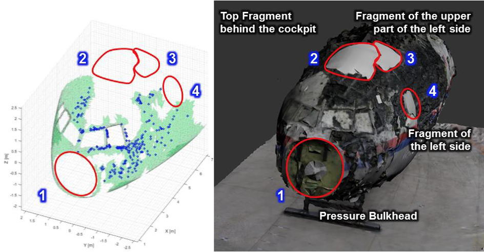 loose missile parts that were only later discovered at the crash site, after the crash, have less evidential value that those found embedded in the wreckage of MH17 and the bodies of the victims.