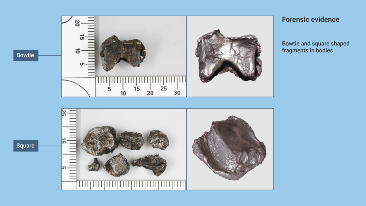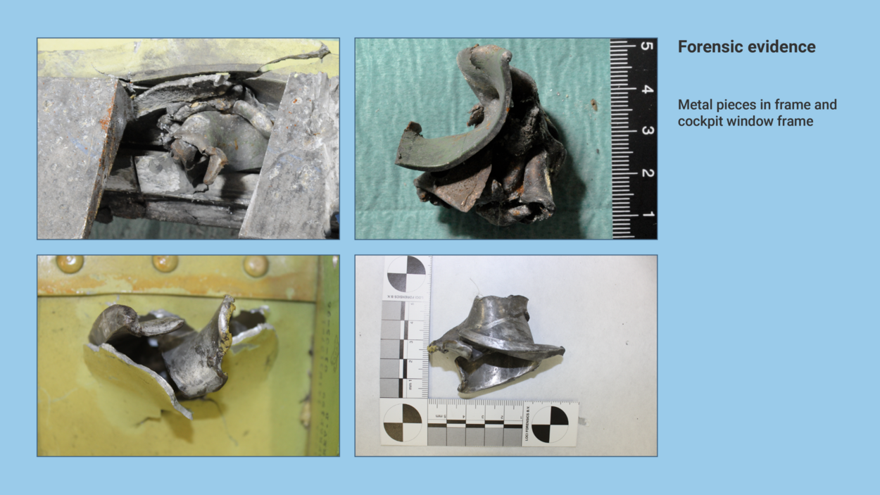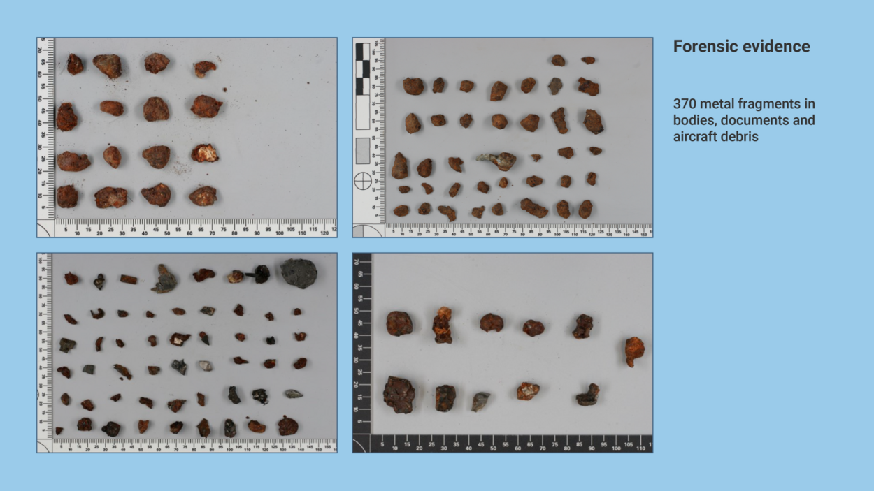 Secondly, we would draw the court’s attention to the metal fragments found in victims’ bodies, flight documents and wreckage.