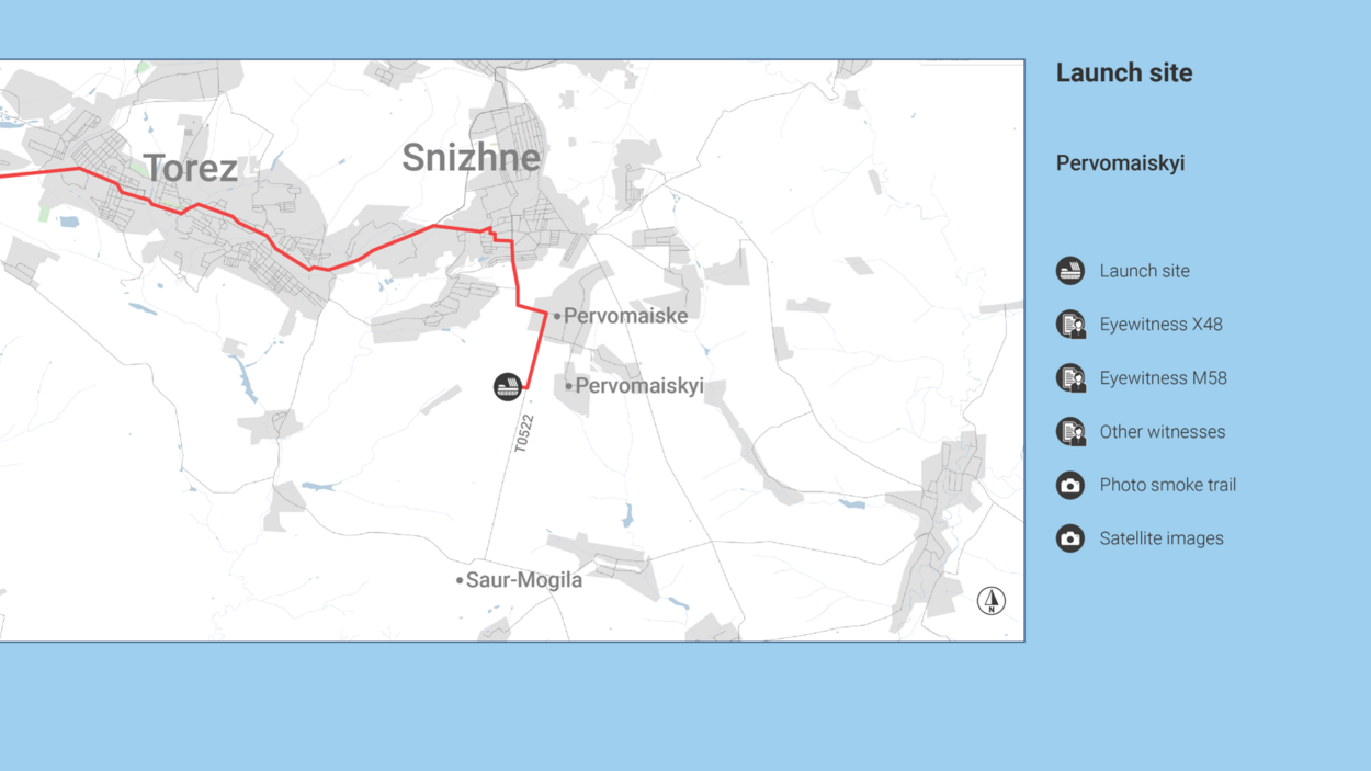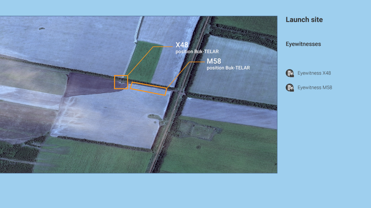 Two witnesses saw a Buk missile launched from the agricultural field at Pervomaiskyi: X48 and M58.