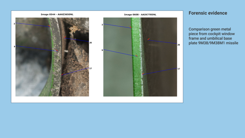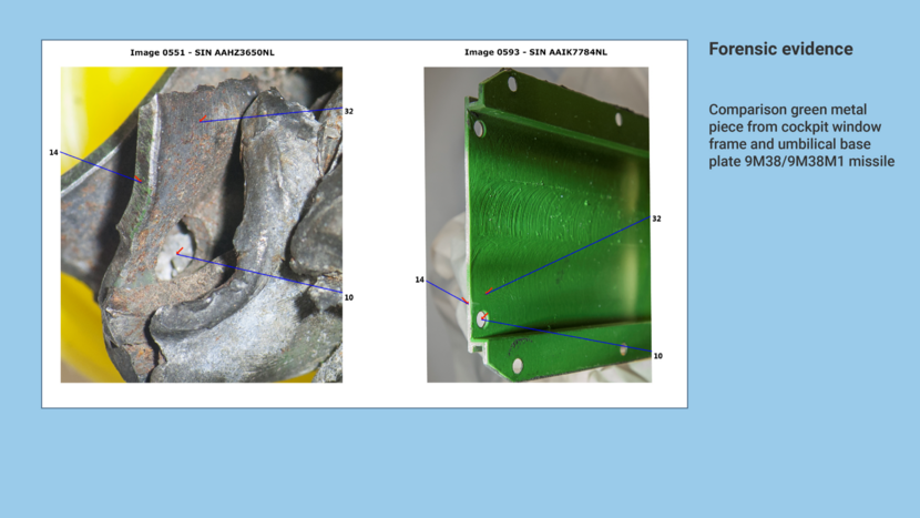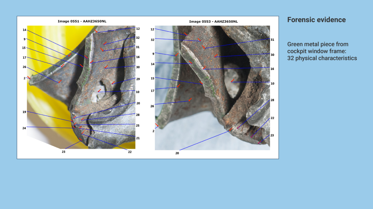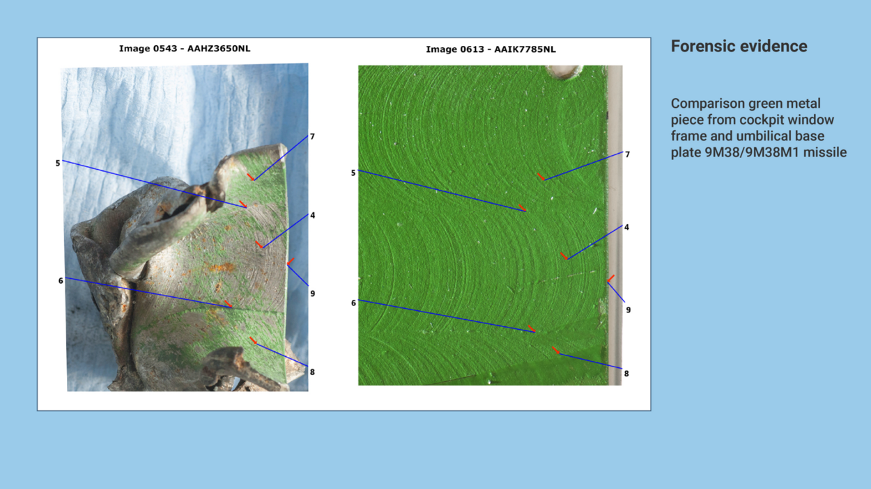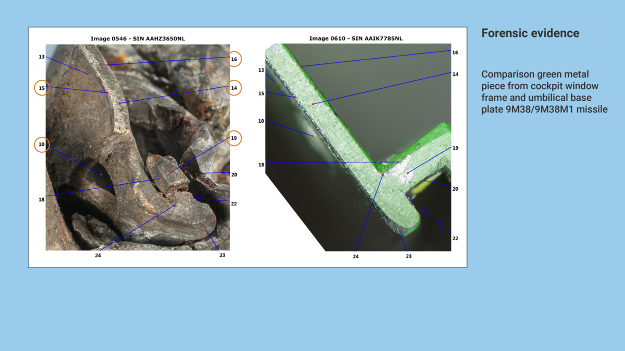 In total the AFP established 32 points on the basis of which the metal lump could be compared to the reference material, consisting of the umbilical base plate of a 9M38 and a 9M38M1 missile.