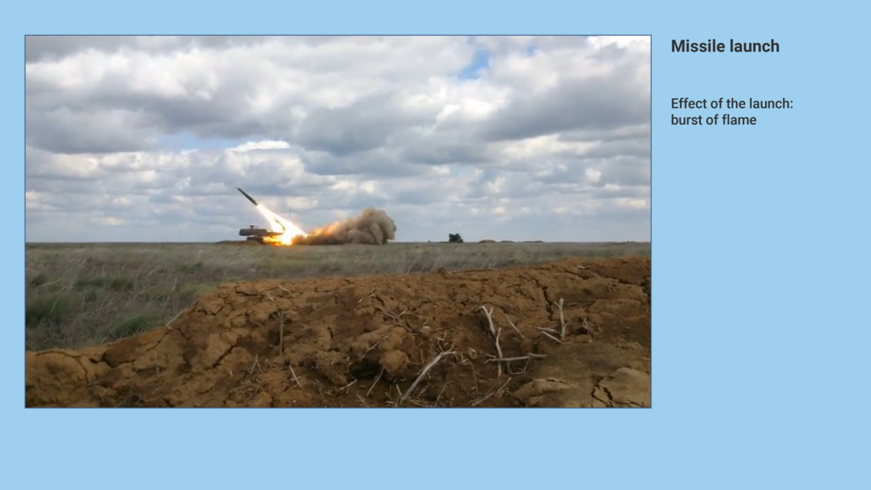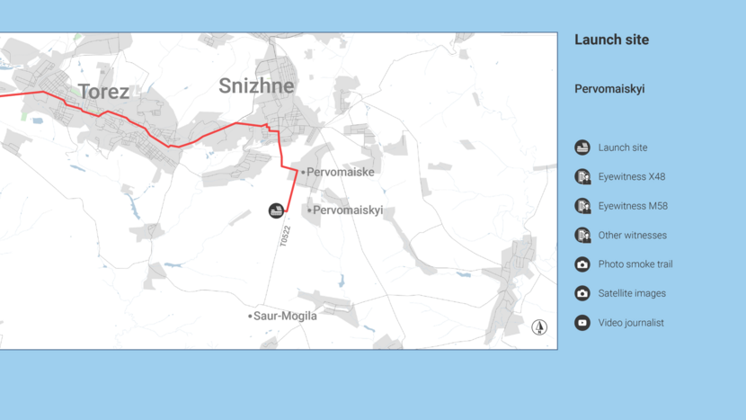 For example, eye witnesses reported seeing a missile launch in this location on 17 July 2014, and photos showed a missile smoke trail, while satellite photos revealed traces of the launch.