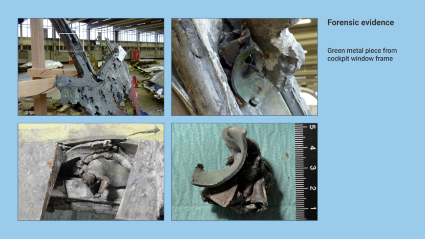 Layers of melted cockpit glass were found on these two fragments. According to the NFI, this can only be explained by the fact that the fragments came from outside the aircraft.