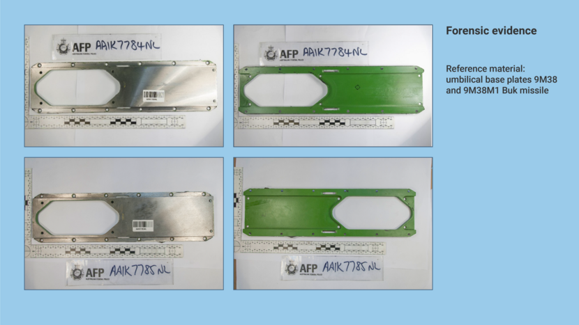 As regards the green and silver-coloured plate from the metal lump from the window frame groove, the AFP concluded that these originally formed a single whole and that the external characteristics of this lump match a specific part of the umbilical base plate of both the 9M38 and the 9M38M1 reference missiles.