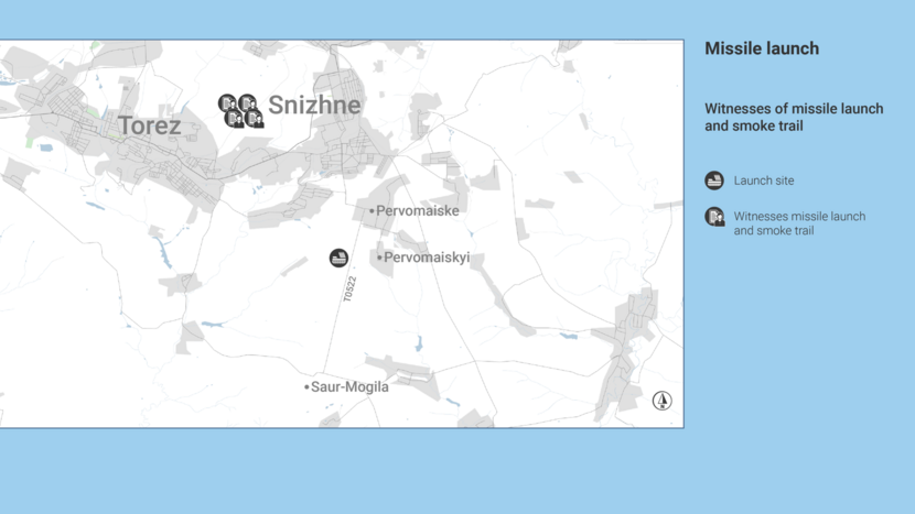 A large number of witnesses gave statements about a missile launch in the vicinity of Snizhne, Torez and Pervomaiskyi.